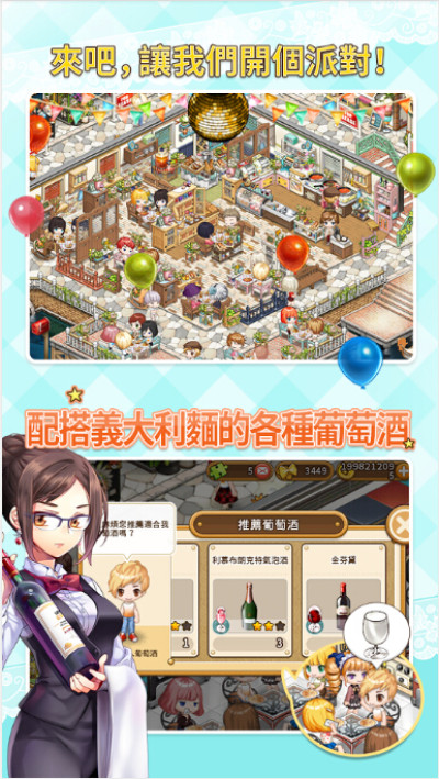 《全名餐厅》是一款模拟经营类的手游,玩家经营一家意大利餐厅,拥有各式各样的食材,可以做出美味的食物,还有葡萄酒享用快来邀请你的好友一起在餐厅开派对吧!