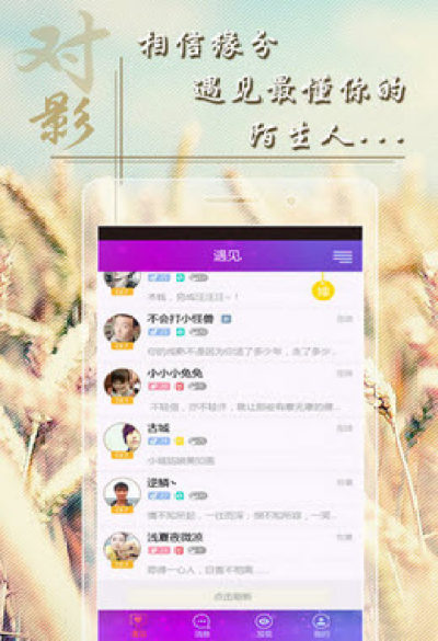 对影是一款陌生人私密交友平台,是一个非常不错的手机聊天软件,大家可以和自己感兴趣的朋友大招和和聊天,谈各种彼此都感兴趣的话题,如果有缘的话可能还会找到自己人生中的另一半哟!