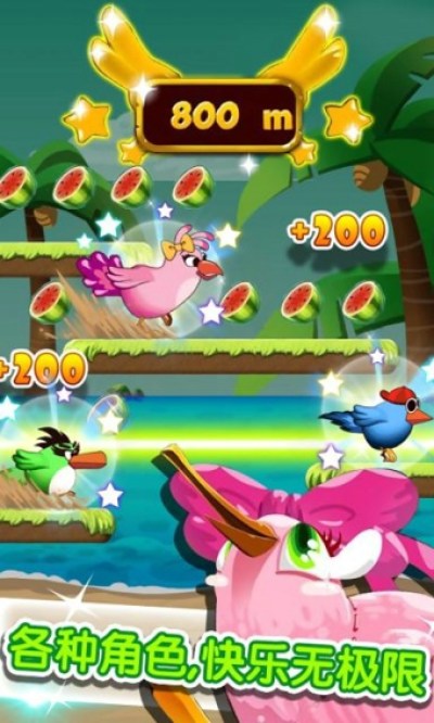 带有撞击的萌鸟横版跑酷游戏!让你化身带有不同道具功能的角色小鸟,在不同的场景中收集西瓜,不停的撞击敌人,冲破一切障碍,最后在高空飞翔!
