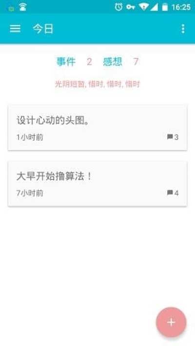 2. 今日分页:浏览当日事件,发表感想,记录新事件。