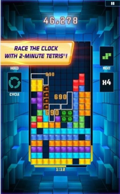 闪电俄罗斯 Tetris Blitz 对战类型的俄罗斯方块。游戏有2分钟的限制,简单激烈,音乐很好听,是浓重金属风格的音乐。