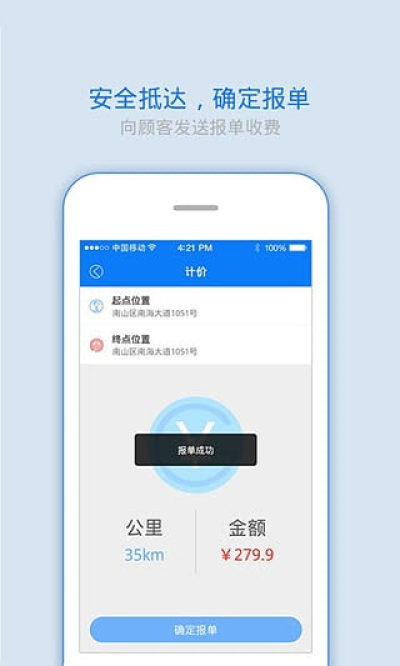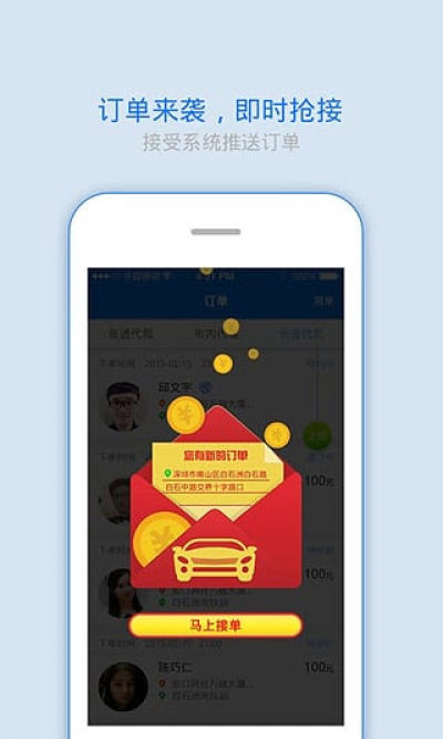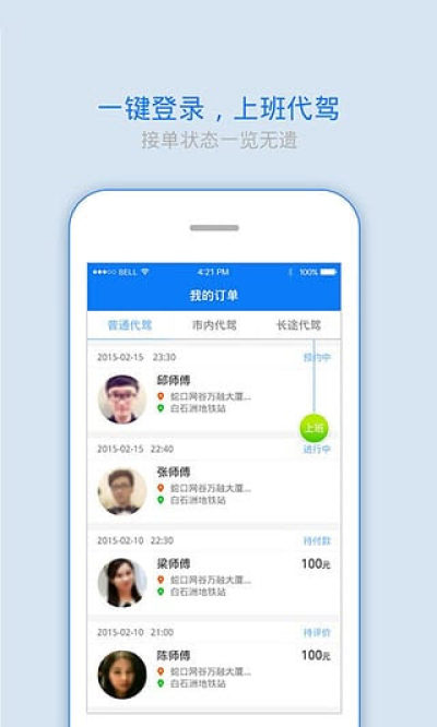 一款基于LBS+020的APP软件,它采用最新的移动定位技术实现线上下单、线下服务,具有不受时间和地点限制、价格透明等优势,通过共享软件平台、资讯、订单和客户,能有效快速对订单进行最便捷的配对,使司机在最短的时间为您提供快捷的服务。