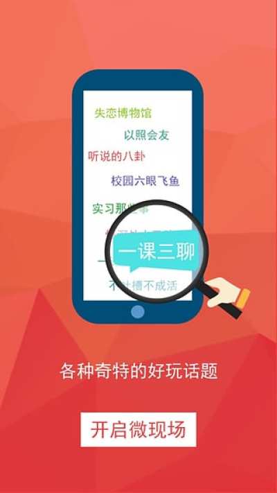 时间一大把,无聊的时候就打开微现场,跟周围同学们一起狂刷本校微现场,让你一天乐不停,从深海到宇宙,从心情到考试,从本校红人到韩国明星,从宿舍到全校,总有你涉入其中的话题。