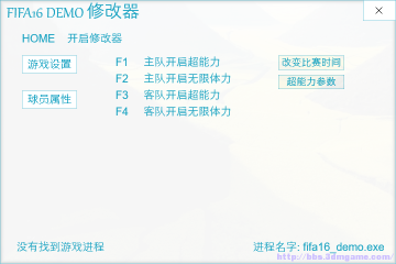 FIFA16比赛时间人物属性修改器,仅适用于FIFA16的DEMO测试版,玩家不仅可以通过这个修改器来改变比赛时间,还可以修改人物的每一项属性,把你喜欢的球员修改成逆天般的存在。对于刚刚接触足球游戏的玩家来说,可以有效降低游戏上手难度。