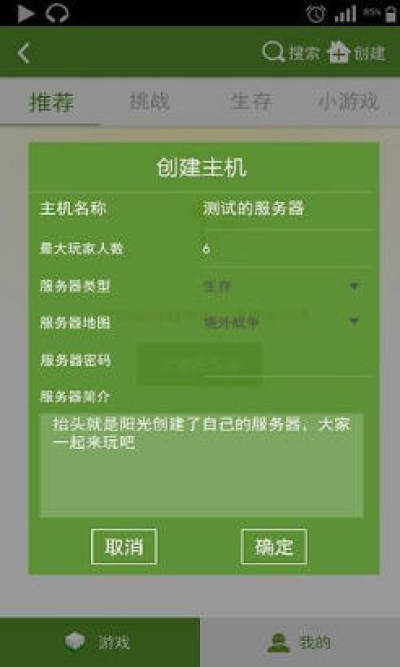2,手机建服:您可以和您的小伙伴在任意有网络的地方用自己的手机创建服务器一起游戏,再也不需要花额外的金钱去租用服务器;3,一键踢“熊”:在游戏中我们为您提供最方便的踢人功能,服务器防“熊”方便快捷,再也不用担心熊孩子拆建筑了;