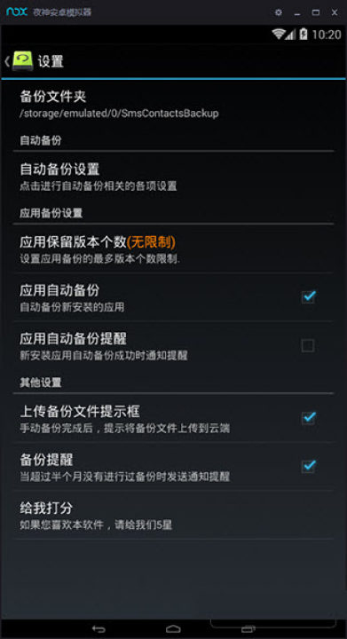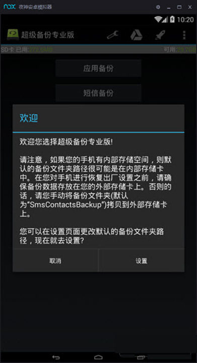 超级备份是一个功能非常强大的手机备份工具,可以一键将手机短信、通话记录、通讯录、书签和应用等备份到存储卡或gmail邮箱中,功能非常强大,该版本已被汉化,使用起来更加的方便简单!