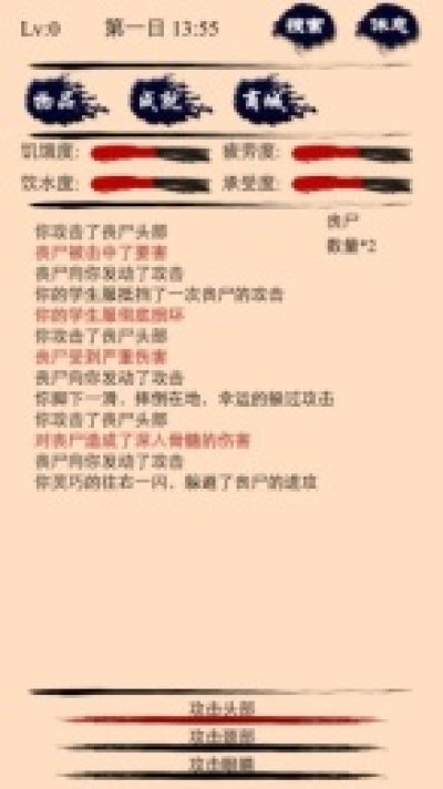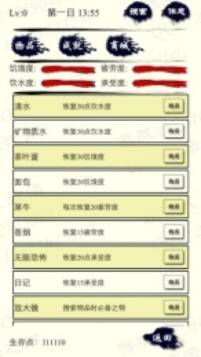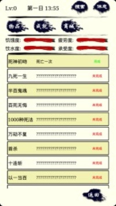 2、需要保证自己的体力饥饿等等屏幕上方的四个长条不要变黑!