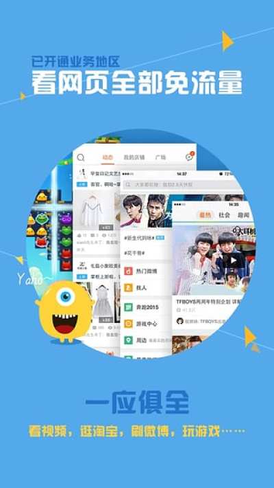 每天使用手机打开各种娱乐应用的时候最担心的就是流量不够用了,那么有没有一款好用的免流量手机上网工具可以使用呢?U玩,是一款集视频,音乐,娱乐,游戏等功能于一体的免流量必备神器,通过U玩APP可免费使用U玩内提供的热门手机网页+附赠多款APP客户端,共享开通地区省内定向流量,看视频、听音乐、玩游戏、泡贴吧、阅新闻、刷微博、网上购物…统统免流量!!就是这么任性!!
