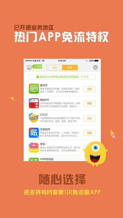 4.可变更所选的多款免流版APP(每月有一次变更APP的机会哦);