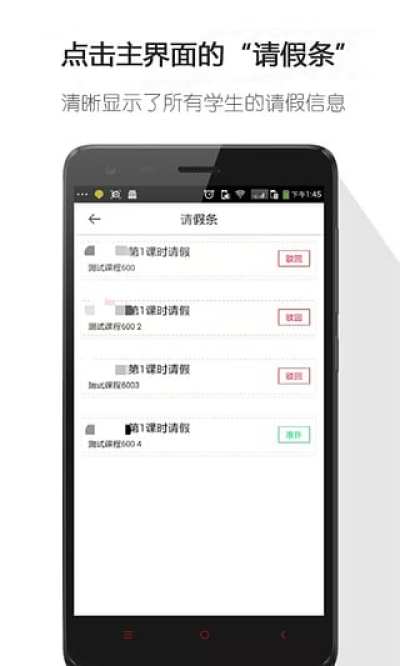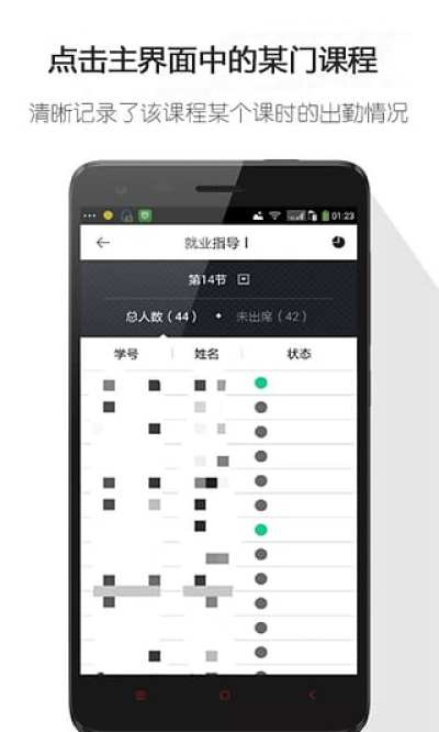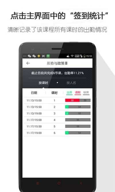 Here签到(教师版),清晰记录了各学生的签到和请假信息,用户可以根据自己的需求,选择按课时、按人名等形式来查阅学生的签到和请假信息。并且当信息有变动时,应用的界面信息也会实时的对应改变,让用户可以实时、方便地的了解到自己学生的签到和请假情况。