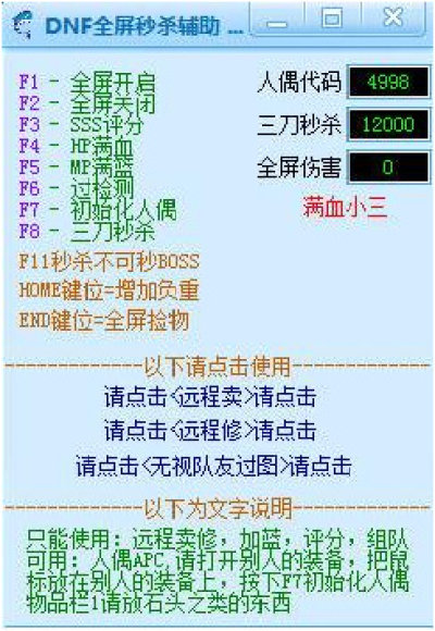 小海豚DNF全屏秒杀辅助是一款简单易用安全稳定的dnf游戏辅助,主要为玩家提供了SSS评分,开启人偶,全屏捡物,一键秒杀等实用功能,喜欢就下载吧!