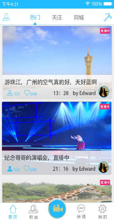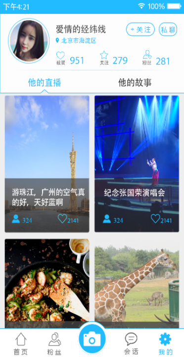 2. 我的故事:除了直播,让你的粉丝对你多一些了解 每个用户专属的时间轴帖子流,粉丝可以查看、评论。帖子内容有文字、图片和微视频