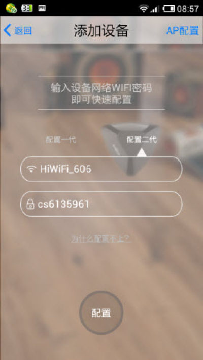 第一次使用“易控”APP也非常简单,打开APP会出现上图所示画面,输入家中WIFI密码,点击下面的配置按键,系统便开始大概一分钟的自动配置,配置好后会进入主页面。