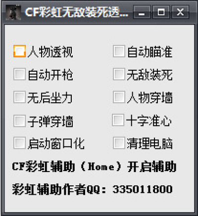 CF彩虹无敌装死透视辅助是一款绿色免费穿越火线游戏辅助,辅助拥有人物透视,自动开枪,无后坐力,子弹穿墙,自动瞄准等丰富实用功能。玩家通过该辅助能够轻松击杀敌人,取得游戏胜利。
