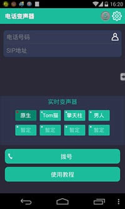 国内真正的电话变声器,边打电话变变声,直接拨打对方电话号码,对方不用安装本软件。能有原生,汤姆,擎天柱,男人等几种特效,能让对方无法识别到你的声音,适合搞怪整人。请勿将本软件用于任何违法用途。