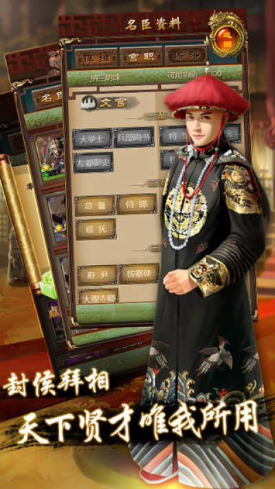 穿越大清扮演千古一帝王,招揽贤臣和名将,重现清朝盛世是多么爽的一件事。佳丽三千,尽展倾城和倾国,宠幸六宫美女,成就真龙之天子在这里都可以实现。游戏独特的推图玩法更是值得一玩!一款以收集、养成、副本战斗玩法为主的卡牌类手机网游。