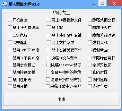 整人恶搞大师是一款非常有趣的整人恶搞软件,你只需要在软件中选择一个你认为最能整蛊好友的功能,之后就能够立刻相应的小工具,只要好友打开就能被整蛊。