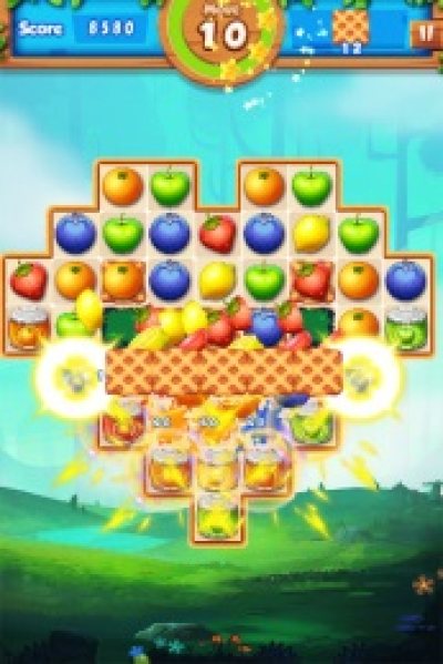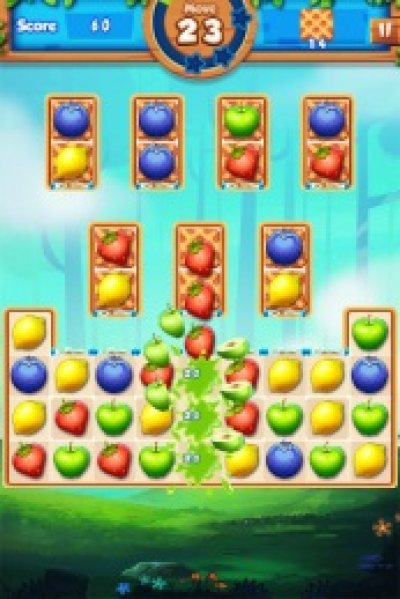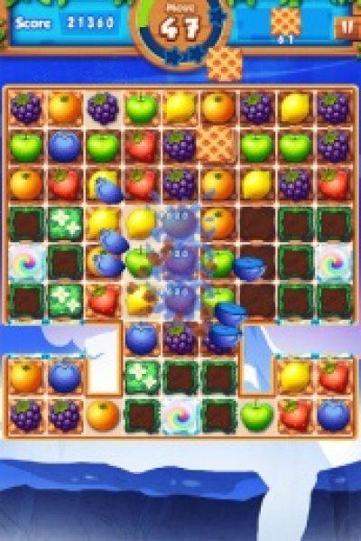 1、在屏幕上滑动交换两个水果,三个或以上的在同一线上并排时,就可以爆破。