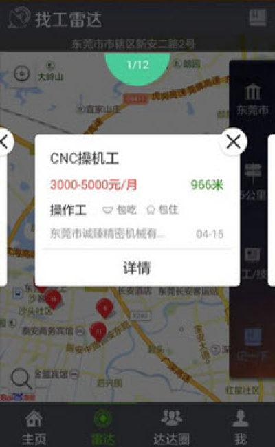这款找工雷达是专门为蓝领准备的一个求职招聘平台,其主要是利用手机雷达来扫描附近的工作岗位,让你不管走到哪都可以随时查看周边的工作需求,正在准备找工作的朋友必备哟!