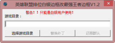 白银排位惊现王者?吓尿了有木有?这个小工具可以完美将游戏载入界面中的皮肤边框修改为王者边框,注意:这里仅适用于白段位的玩家。完美修改,绝非自慰,该局的所有玩家都可见!让冲分的小学生看见你哭去吧!需要的就来试试吧!