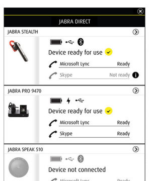 Jabra Direct 有一个用户友好的控制面板,可通过 Windows 通知区的 Jabra Direct J 图标轻松访问。 在控制面板中,您将看到耳麦和软电话的连接状态,以便您在每次通话时知道一切已经准备就绪。