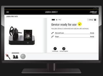 使用 Jabra 音频设备增强您的个人耳麦体验。 如要对您的耳麦功能进行个性化设置,只需在控制面板中点击您正在使用的设备,然后您将被直接带入 Jabra Direct 主屏幕。 在那里,您可以轻松管理所有最常用的设置 - 如:启用/禁用语音指南、调节触摸屏背光强度或更改音频音量设置。