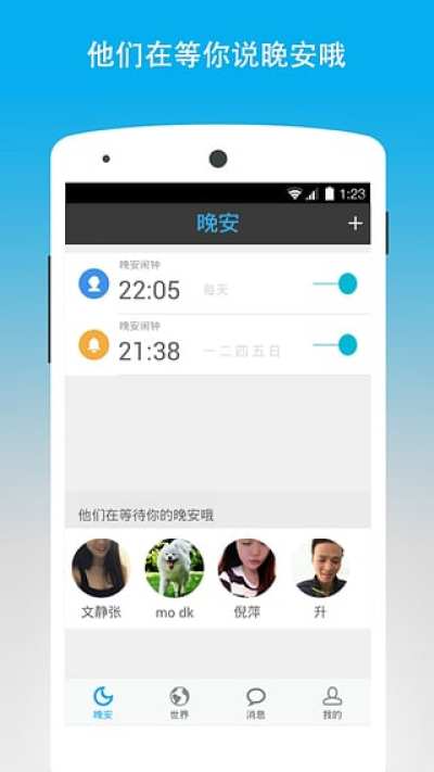 3、跟世界各地的人说晚安,交流聊天志同道合