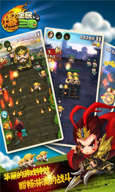 全民爆三国是一款以三国为题材的动作射击类手机游戏,该作游戏融合了诸多的创新玩法,给玩家带来全新体验,该作游戏由柠檬叶子网络科技有限公司提供,本作采用Q版搞笑的人物风格,风趣的剧情设定,恶搞三国,力图为玩家呈现一个完全不同的三国世界观,让玩家可以体验到游戏带给自身的快乐。