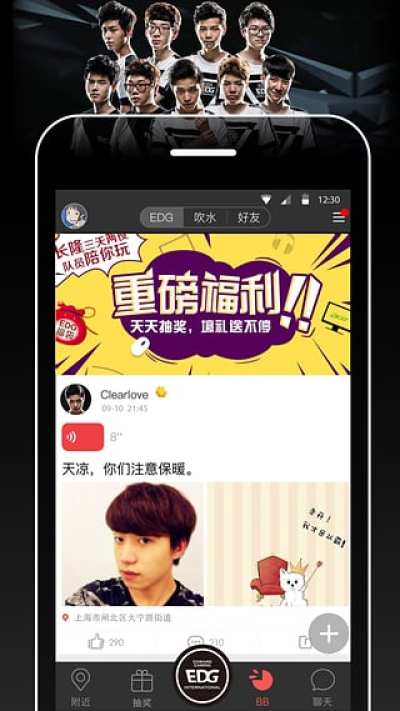 在这里,用户可以与EDG 俱乐部的队员零距离接触,实时了解战队动态,参与官方每日抽奖活动,并与附近的玩家互动。