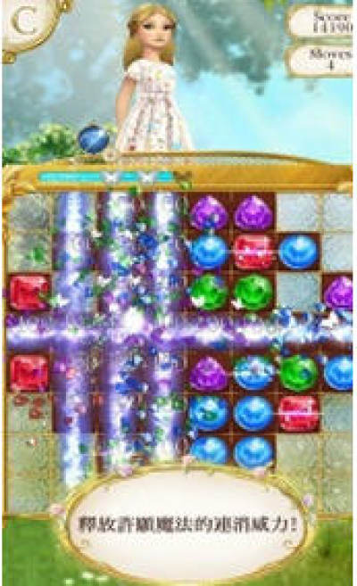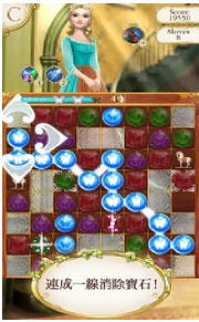- 灰姑娘可爱的动物朋友们非常乐意伸出它们的援助之手 (爪) !让老鼠葛斯与杰奎琳击碎多事的煤渣方块,消除一整列宝石,或者使用蝴蝶道具消除掉游戏区域中特定颜色的宝石。