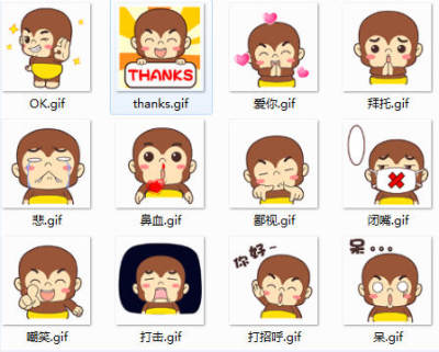 宝宝猴qq表情包是由翔通动漫全新推出的可爱表情包。听说最近猴子很火?宝宝猴也来凑个热闹;宝宝猴qq表情包的主角是一只可爱的猴宝宝,调皮搞怪又爱卖萌,很招人喜欢。该表情包包含了爱你、打招呼、拜托、难过、跟斗云、发烧、念经、得瑟等表情,喜欢的朋友千万不要错过。