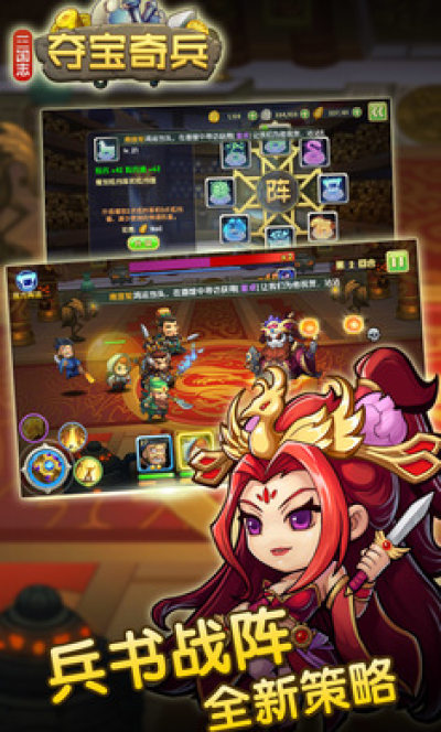 三国志夺宝奇兵,趣味三国名将手游,上百名将各个Q萌呆贱,游戏在经典2D回合制对战的基础上加入了全新的策略玩法,激将配缘、兵书战阵、神兵御敌、擒将夺宝……样样精彩!快快加入我们,在三国的世界里与小伙伴们一道纵横驰骋,攻城掠地,建立属于自己的三国霸业吧!