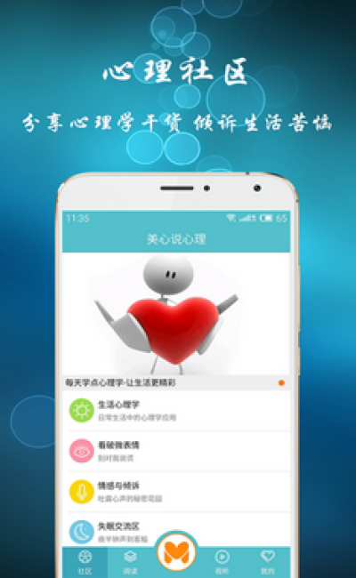 美心说心理是一款为广大用户打造的心理学健康资讯软件,可以帮助用户制订适合用户的心理治愈方法,让用户得到更好的心理状态。美心说心理通过个性化的自定义频道帮助用户订阅自己关心的心理学文章、治愈系图片和正能量视频,对心理学感兴趣的朋友必备哟!