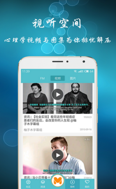 3.视听空间:内容丰富的趣味心理学视频与图片模块,帮你释放压力,缓解抑郁、烦躁、焦虑、失眠等心理问题。