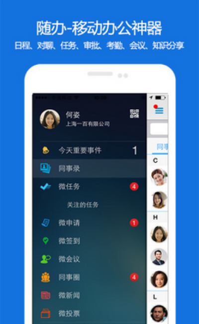 随办是一款为企业量身定做的手机软件,具备公司通讯录、组织架构图、个人名片、头像显示、分享联系方式、上下级显示和一键拨打电话等功能,是亿万职场人必备的移动工作神器!