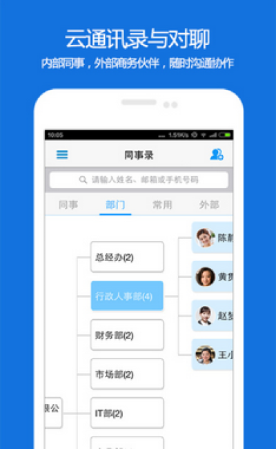 1.组织架构:上下级关系及职能、真实头像,快速找到同事