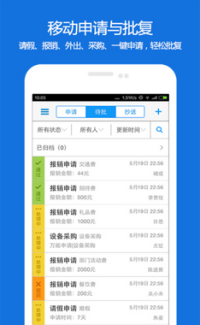 人事最爱功能:日历、催办、考勤、调查、投票、审批
