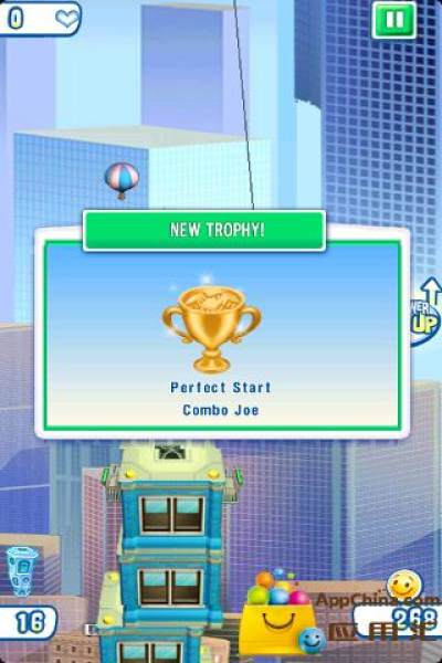 完美地投下建筑块时,就将启动连击。连击结束后,在连击中获得的所有开心值将乘以你在屏幕上看到的连击乘数。