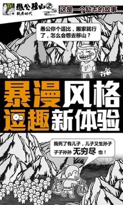 愚公移山2是黑桃互动发行的首款暴漫风格逗趣手游,游戏采用流行的暴漫美术风格,融入生子、移山等多种玩法,带领玩家进入手游戳屏新时代。
