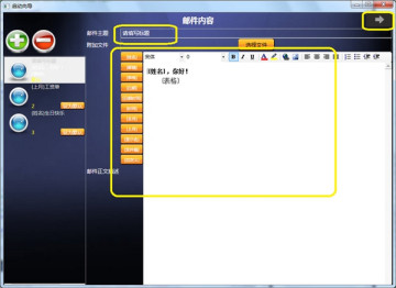 邮件内容编辑,与Excel字段变量生成功能 ,标题也支持变量。支持插入附件.
