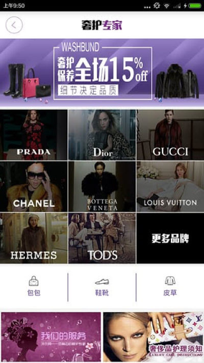 日常衣物、家纺家居、汽车内饰等全方位洗护服务;特别提供了箱包、鞋靴、皮衣等奢侈品清洗、翻新和养护等高端服务。