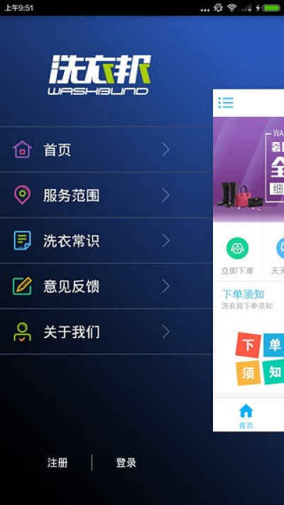洗衣邦是一款上门洗衣服务软件,为用户提供快捷、优惠和专业的洗衣服务,用户通过这款洗衣邦手机应用可直接下单和预约上门取衣,等衣服洗好后再主动为你送回来,真正实现一键洗衣,洗衣进度随时查看,方便快捷!