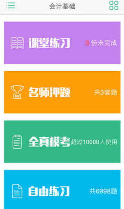 1、最新考纲,海量题库:2015年会计从业采用了新题库,有别于其他刷题软件,我们有资深考证老师根据新考纲重新出题,每道你做的题都是考场可能会出现的!