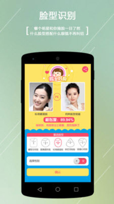 2.用户脸型、性别自动探测,更有哪个明星范儿一目了然;