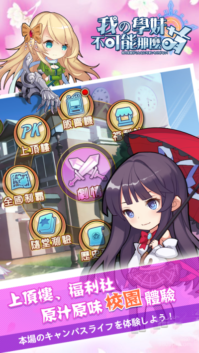 暑假过了一个月,是否想念福利社的早餐呢? 在我的学妹不可能那么萌中,还有各种测验来考较你的实力,除了丰富并庞大的世界观外,还有无数的任务供你自由选择发挥,不服气?那就上顶楼单挑吧! 将眼前所有的障碍扫除,朝著全国制霸的梦想迈进吧!