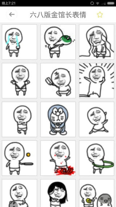 这是金馆长表情包的手机版本,为大家精心挑选了大量经典的金馆长表情,大家在微信或QQ上和好友聊天时,通过该软件发几张金馆长表情图会让聊天变得更有趣味,感兴趣的朋友快来免费下载使用吧!