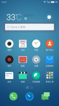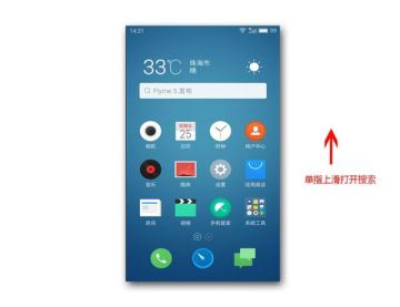 Flyme 5在桌面新增了搜索功能,能够方便用户查找手机应用或者搜索新闻资讯。而在第二屏时能够通过单指上滑打开搜索,无需回到第一屏。