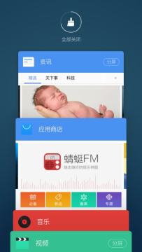 在桌面底部向上滑能够打开卡片式多任务界面,向左右滑可清除单个应用,点击“全部关闭”可一次性清除所有应用,相比之前的多任务界面会更加直观清晰。