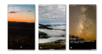 Flyme 5新增了全新的个性化锁屏,用户可以通过各种不同的互动方式让锁屏变得更有趣,主题美化已经上线了上千种锁屏资源。下图为其中一款锁屏,用户能够从动态的锁屏中感受到大地苍茫、云海涌动以及流星滑落,点亮屏幕的一刻就充满了惊喜。