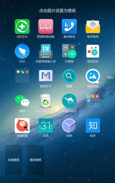 进入编辑模式后,还能更换壁纸,可选择在线壁纸、图库壁纸或者官方壁纸,不用去主题美化也可轻松实现壁纸的更换。